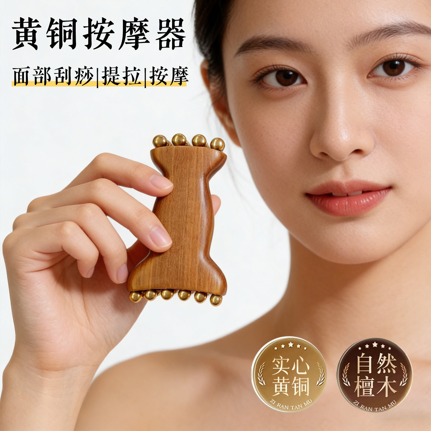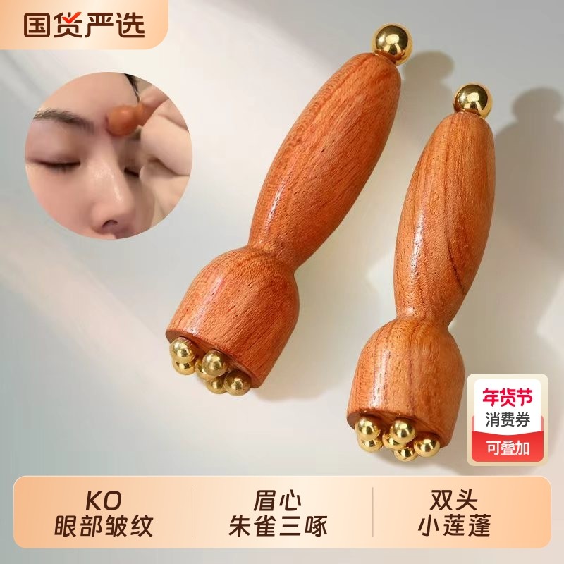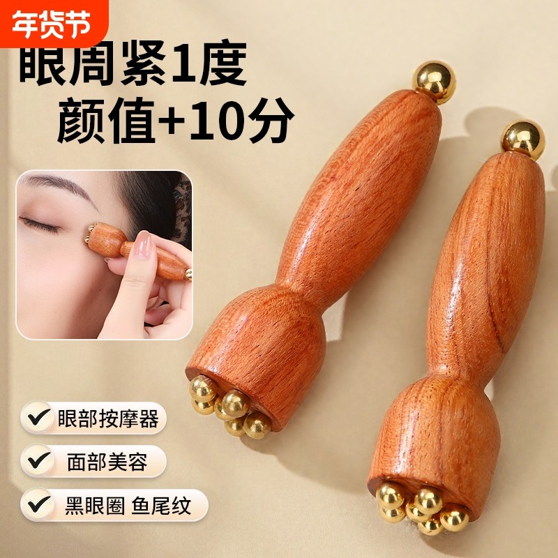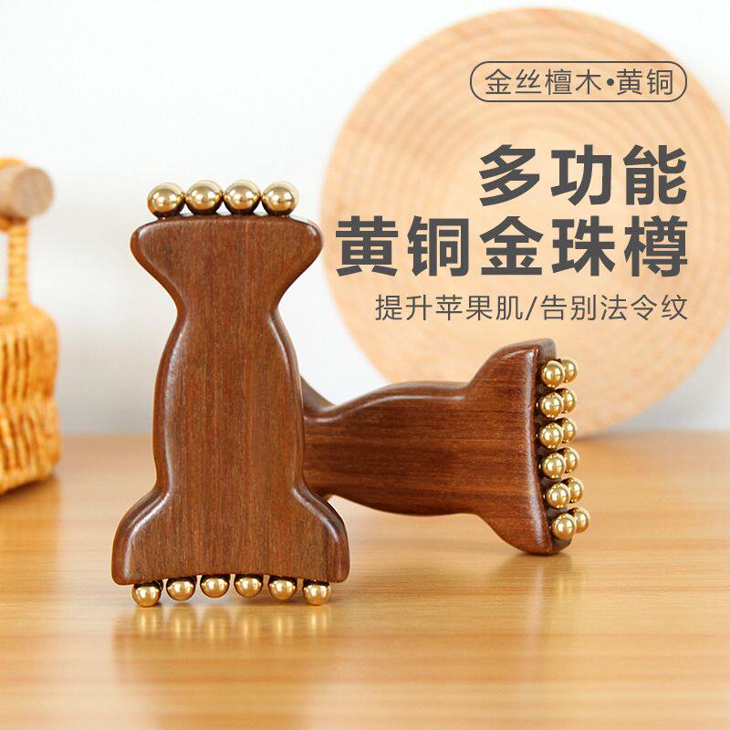 黄铜脸部按摩器面部拨筋棒檀木疏通经络刷眼周部按摩美容护肤工具