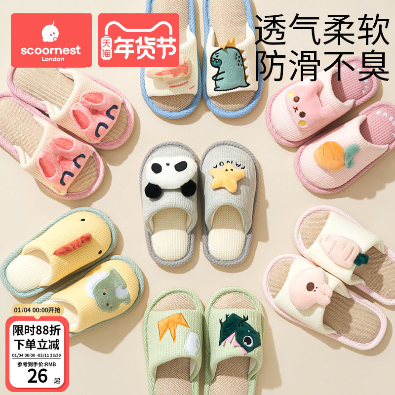 儿童亚麻拖鞋女童可爱家居室内男童防滑女孩春秋四季宝宝拖鞋夏季