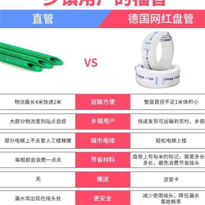 PP盘R管水管加厚 配件接头4分20家用6分25冷热自来水管子热熔管材