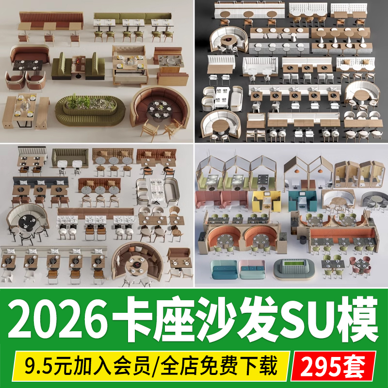 卡座沙发CAD草图大师室内咖啡厅奶茶店弧形异形餐厅餐桌椅su模型