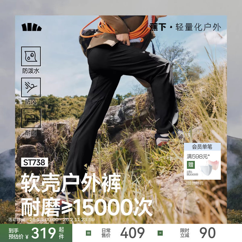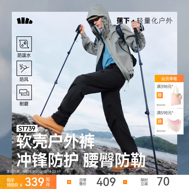 蕉下软壳裤男加绒户外徒步登山长裤高弹耐磨冲锋裤运动裤子直筒裤