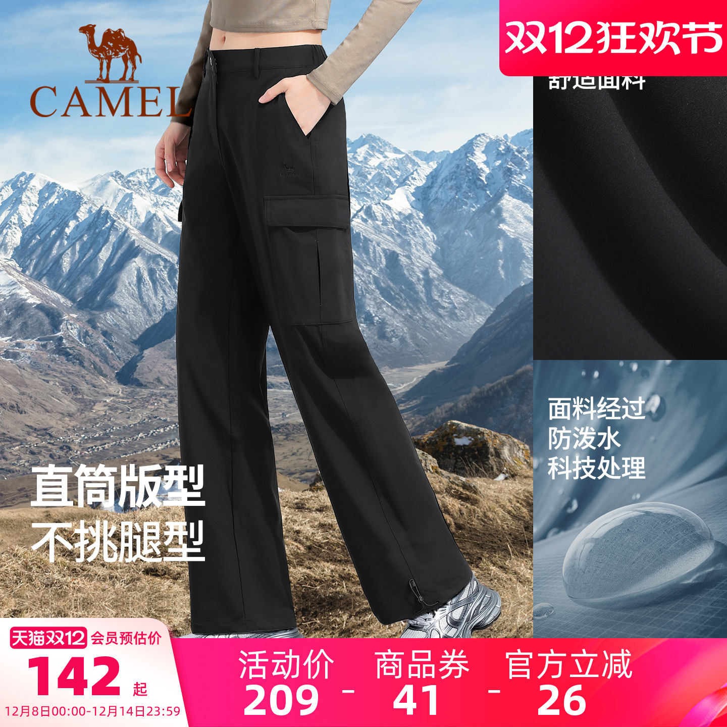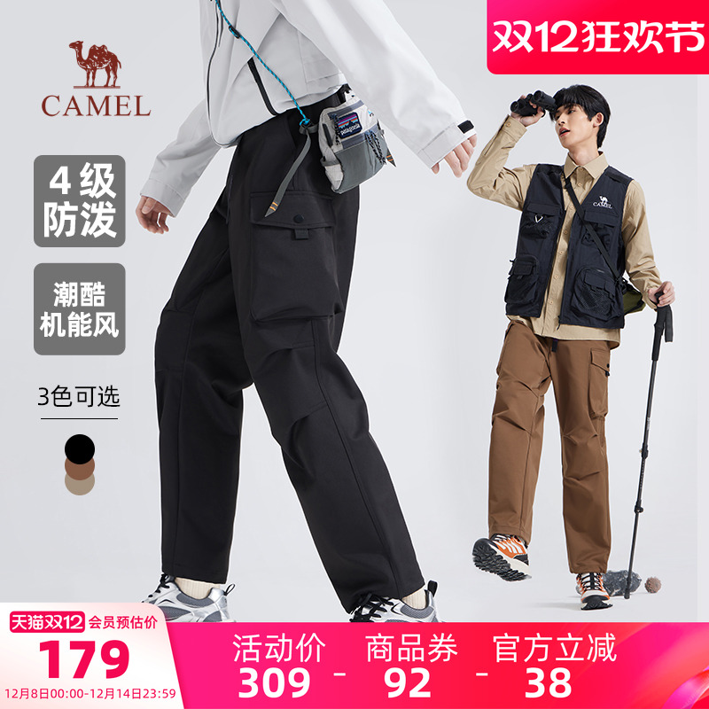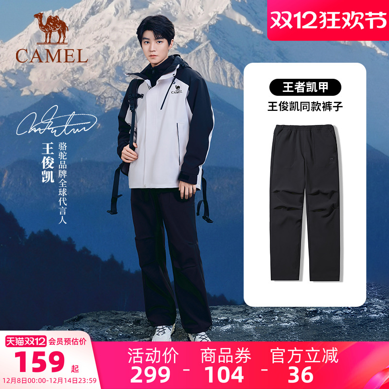 [王俊凯同款]骆驼户外冲锋软壳裤男防风耐磨加绒工装长裤伞兵裤女