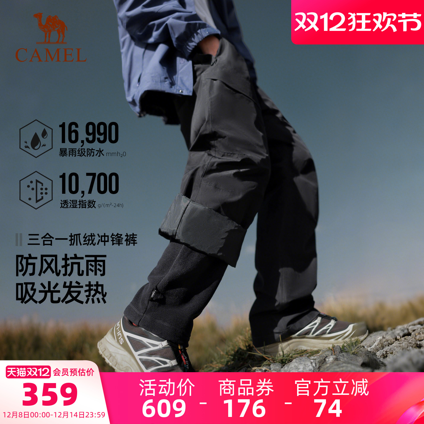 骆驼户外冲锋裤男三合一防风防水抓绒内胆高透湿防失温登山长裤女