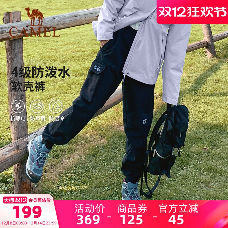 骆驼户外冲锋裤男女款秋冬防风耐磨徒步登山硬壳裤女士伞兵裤男裤
