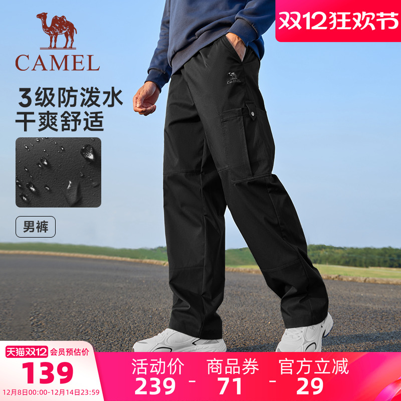 骆驼户外冲锋软壳裤工装风防泼水男新款春秋宽松直筒休闲伞兵长裤
