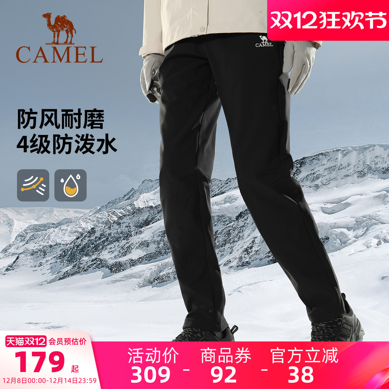 骆驼户外软壳裤男秋冬加绒保暖冲锋防风防泼水抗静电徒步登山裤女
