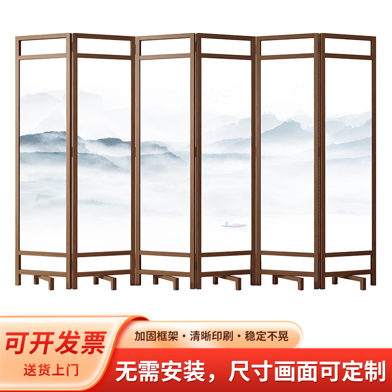 可折叠移动屏风隔断客厅新中式办公室房间分割神器实木屏风遮挡板