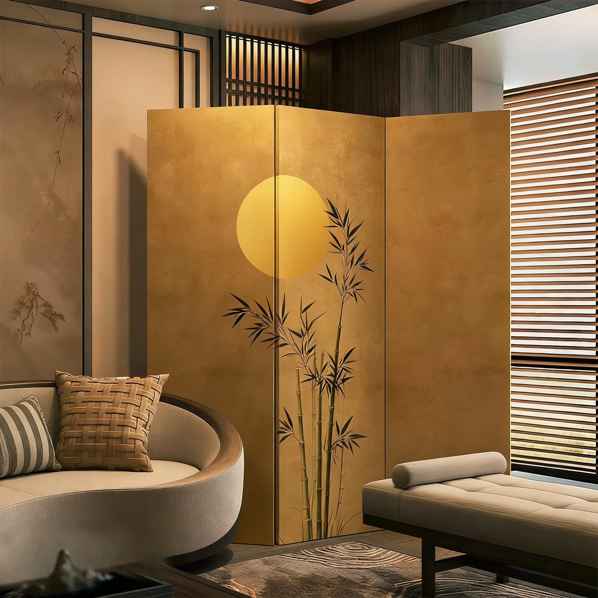 纯实木屏风家用竹屏风定制简约现代风格日式现代入户玄关隔断定做