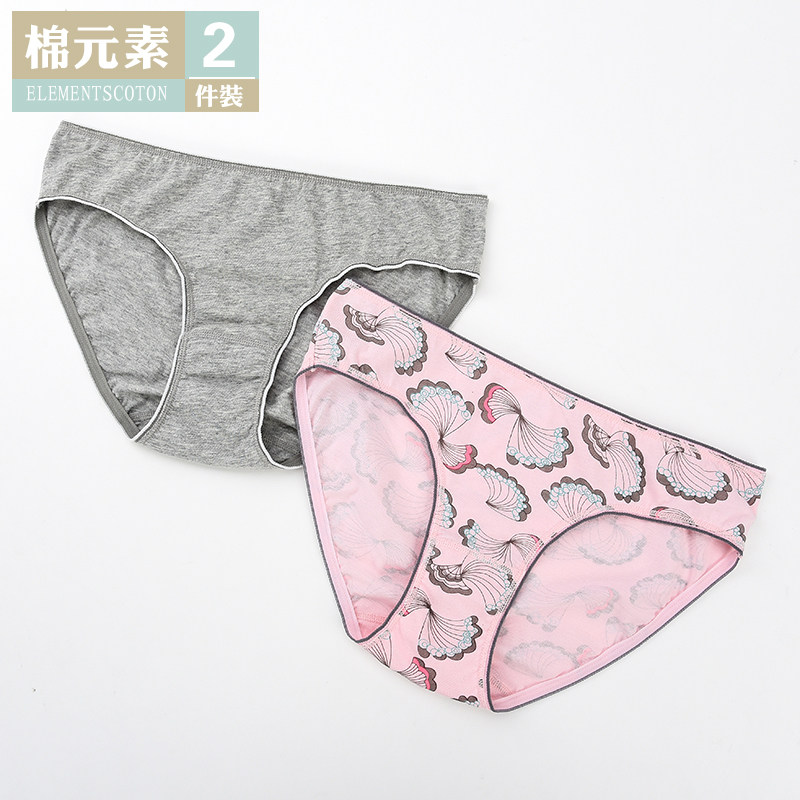 2条装棉元素女内裤 纯棉三角中低腰简约舒适薄款三角内裤女LM599
