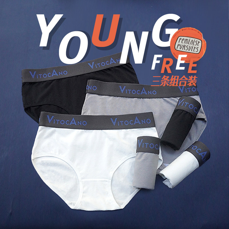 3条 原创中性风帅t宽边女内裤 纯棉简约抗菌舒适运动包臀三角包邮