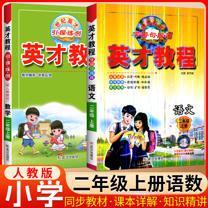 英才教程二年级上下册语文数学 小学2年级上下册课本同步教材全解练习题教材完全解读测试字词句篇段辅导资料