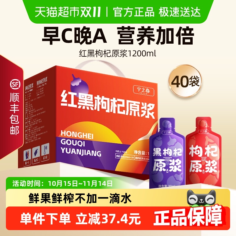 宁之春宁夏红黑枸杞原浆礼盒鲜榨红枸杞汁官方旗舰店宁夏中宁枸杞