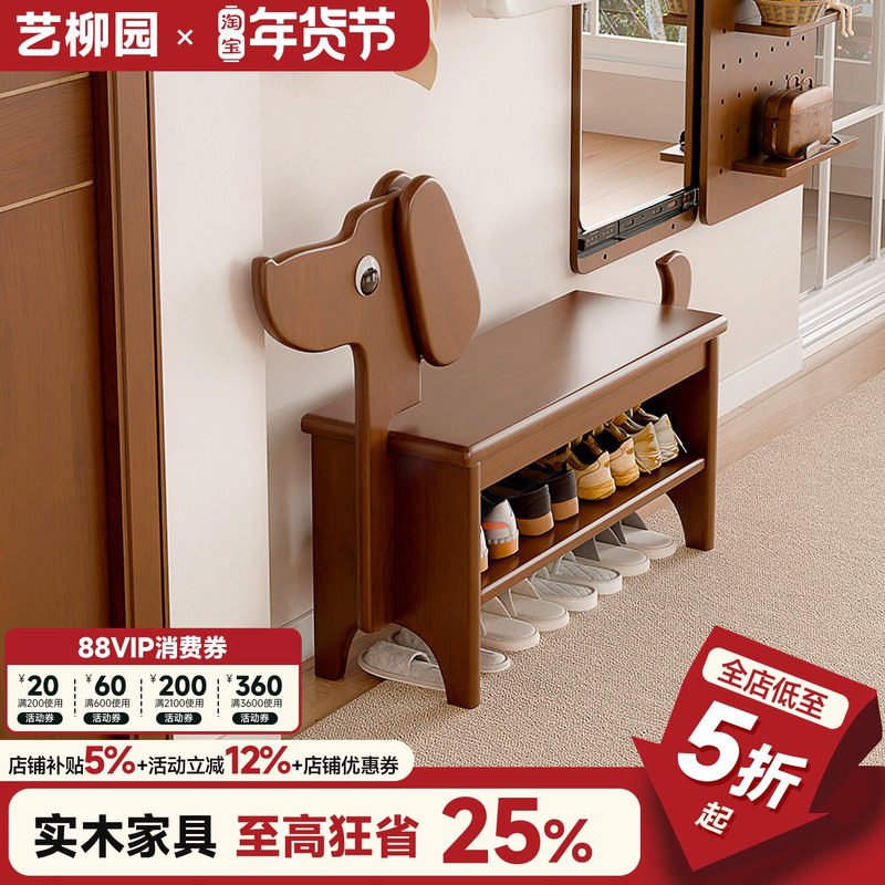 实木换鞋凳家用创意可爱小狗换鞋凳玄关入户鞋柜坐凳一体创意鞋架