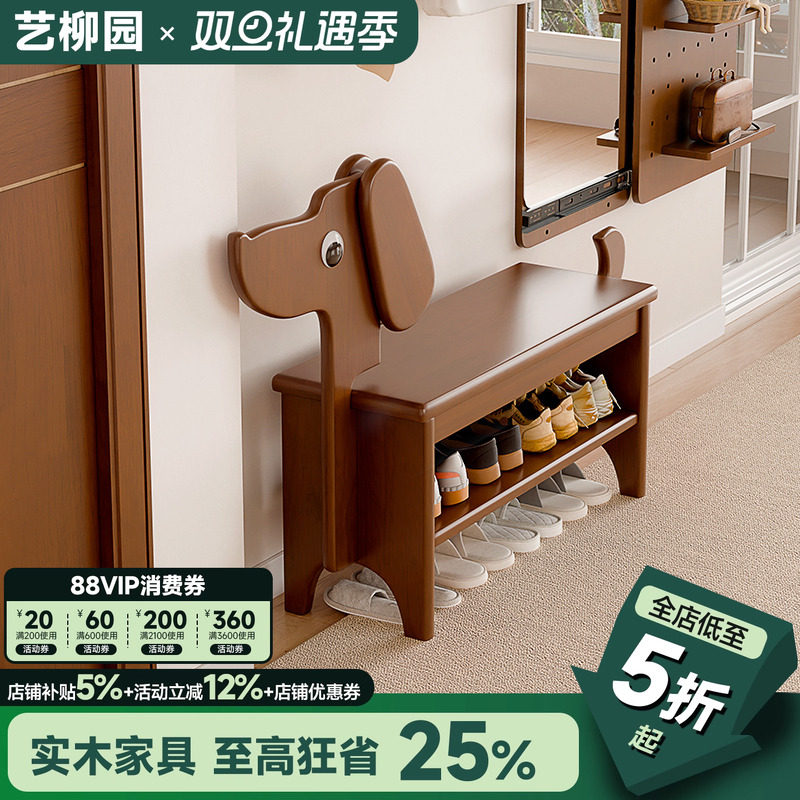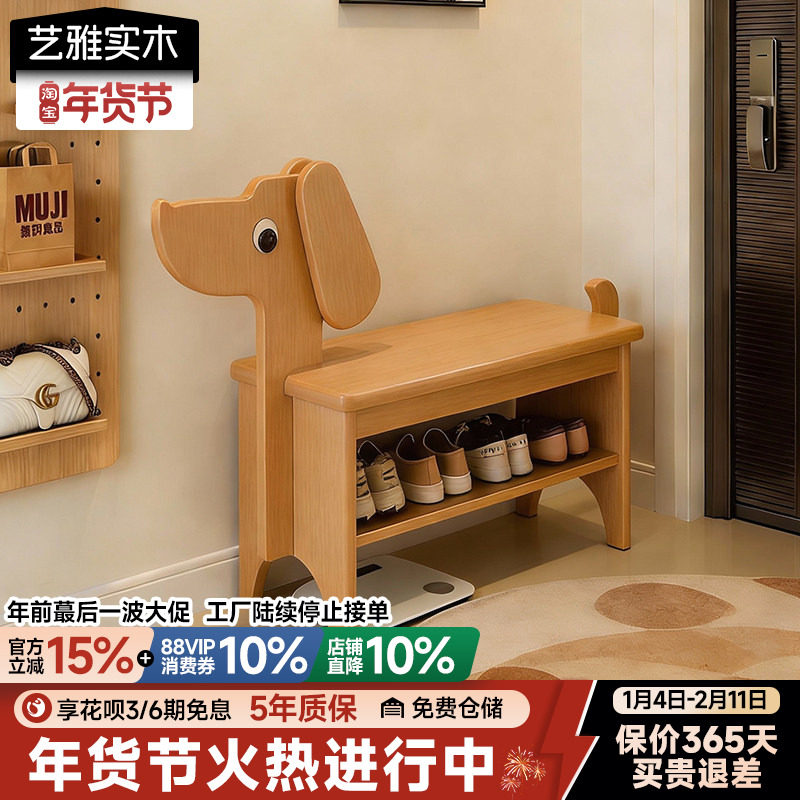 东木实木小狗换鞋凳鞋柜家居鞋凳入口门创意鞋架储物柜可坐可穿鞋