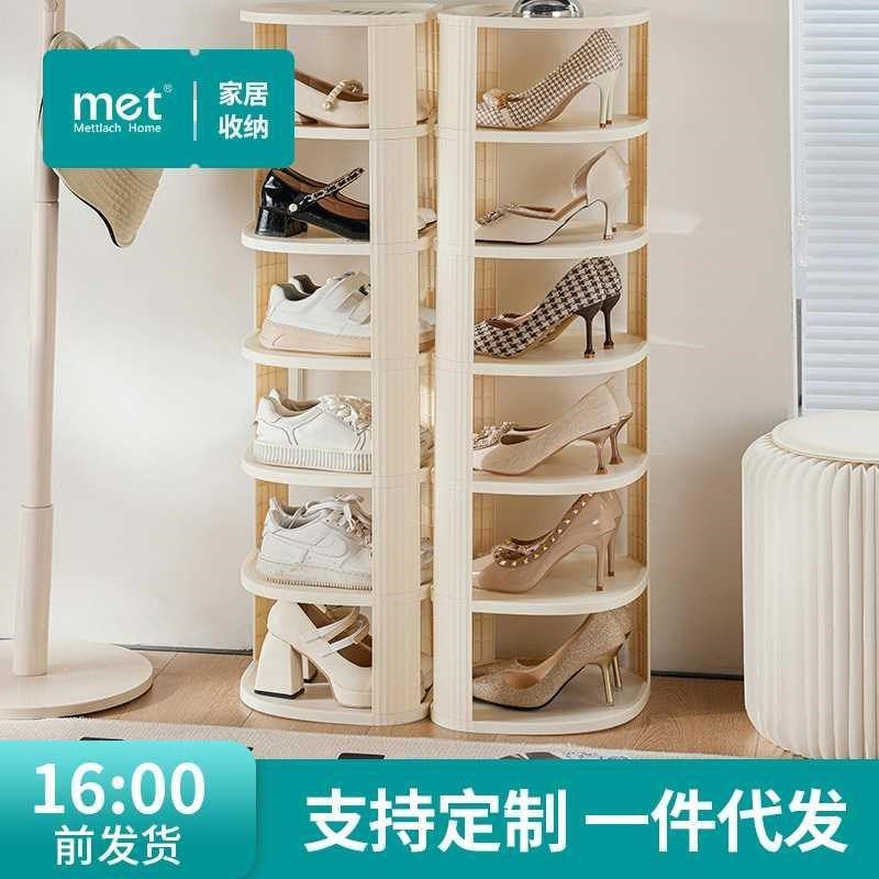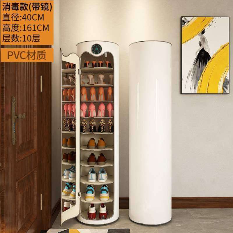 创意家用省空间门口收纳柜简易轻奢鞋架高立式小户型圆型旋转鞋柜