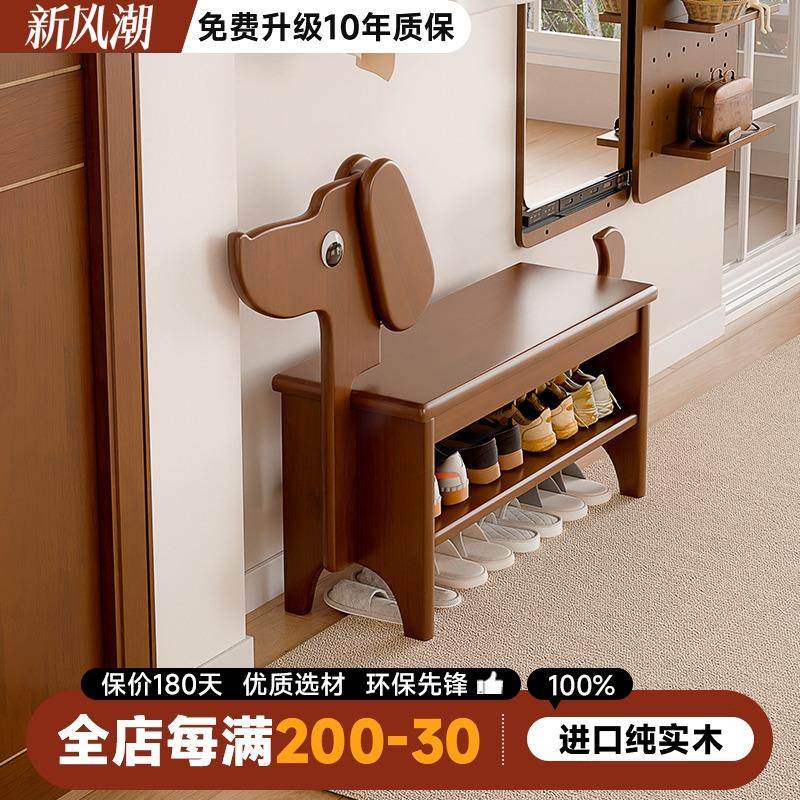实木小狗换鞋凳家用入户门口穿鞋凳可爱创意鞋架进门可坐一体鞋柜