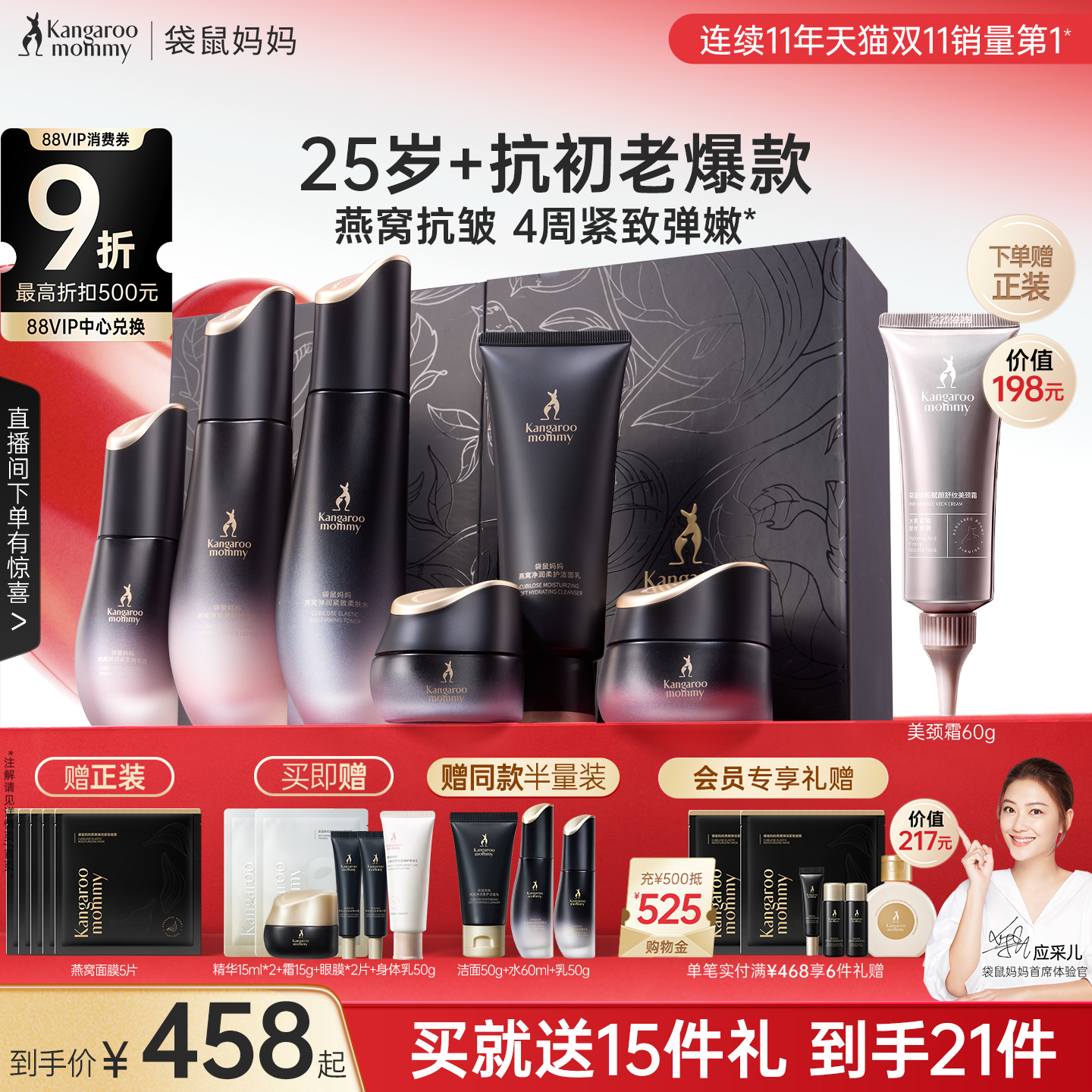 袋鼠妈妈燕窝套装准孕妇护肤品补水紧致准孕期专用水乳化妆品正品