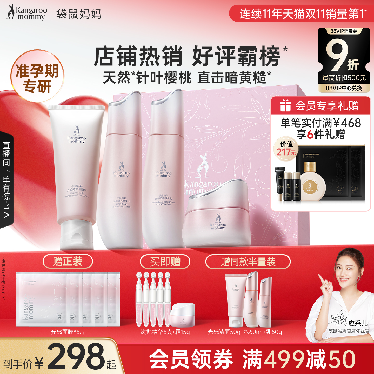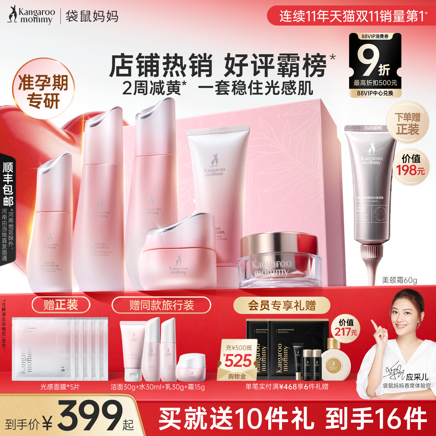 【双11开卖】袋鼠妈妈光感水乳套装准孕妇护肤品发光水补水提亮