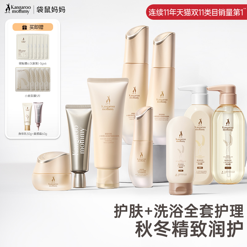 【双11开卖】袋鼠妈妈小麦准孕妇水乳套装护肤品可专用精华化妆品