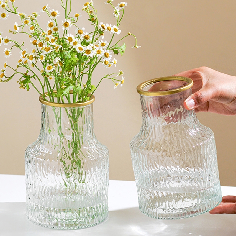 冰川玻璃花瓶ins风大口客厅卧室桌面水养插花摆件装饰大气办公室