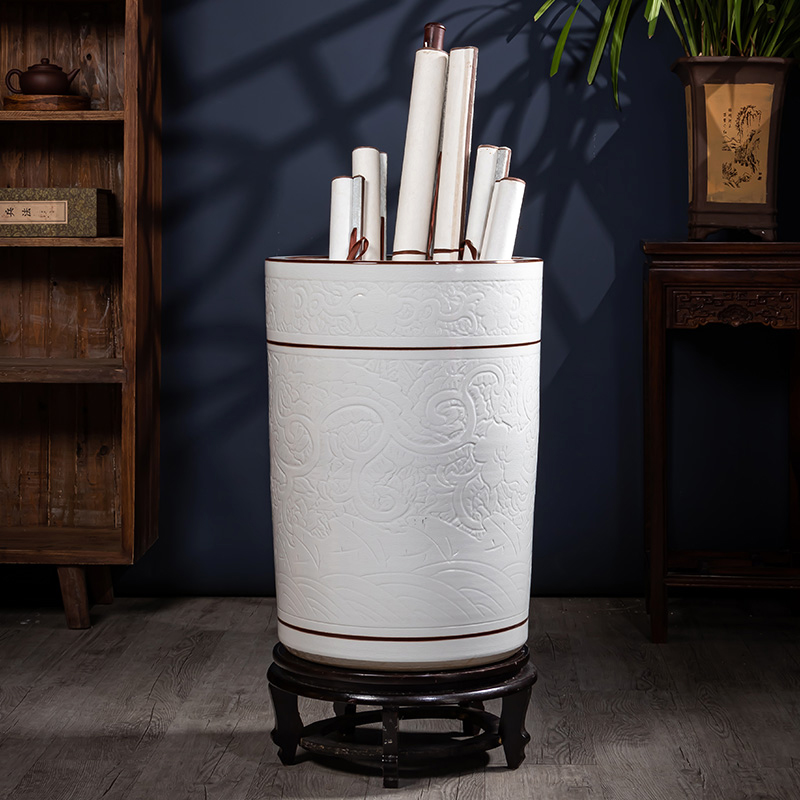 景德镇陶瓷轻奢书画缸箭筒客厅大花瓶中式书房字画桶雨伞收纳摆件