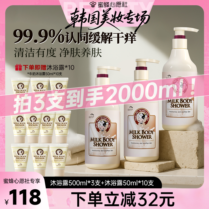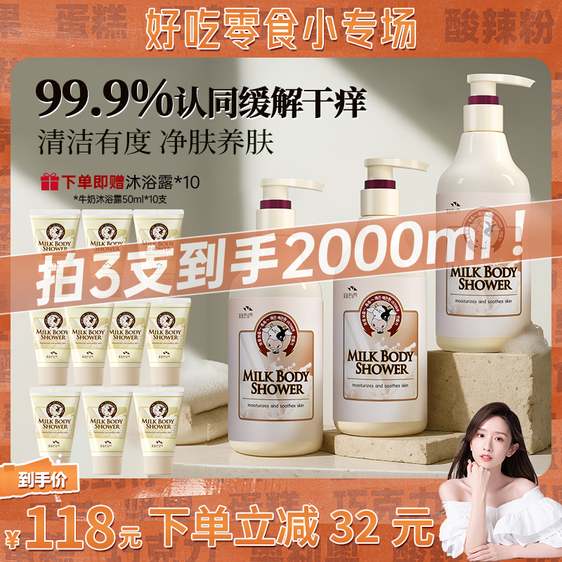 韩国所望牛奶沐浴露清洁保湿男女通用沐浴乳家用洗澡嫩肤补水正品