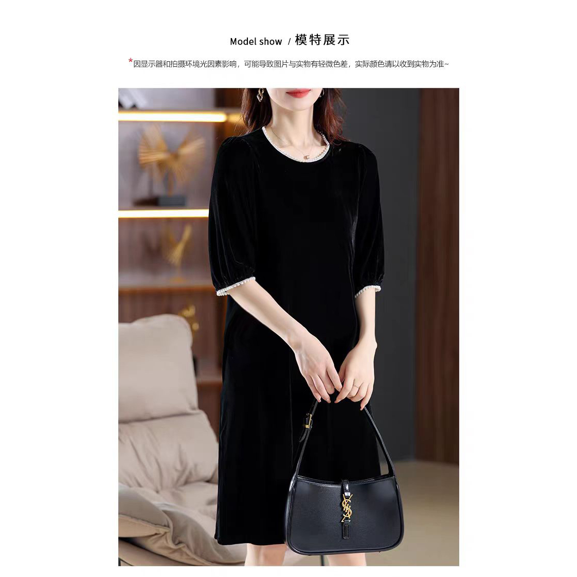 2025年新品牌高端高贵洋气欧货真丝全丝绒金丝绒女法式春秋连衣裙