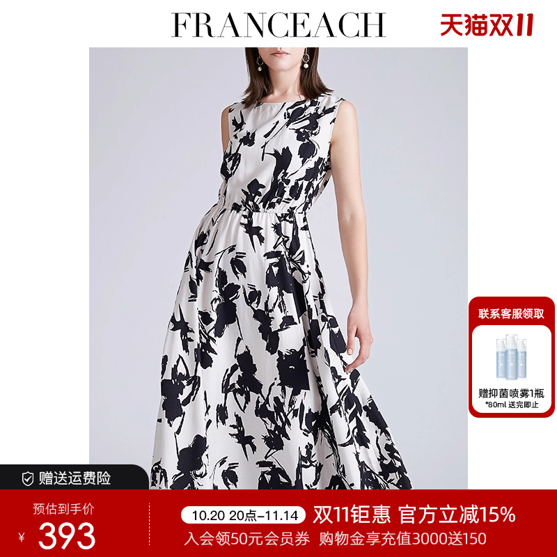 EP雅莹女装 真丝肌理感印花收腰开叉连衣裙 商场同款 4635A