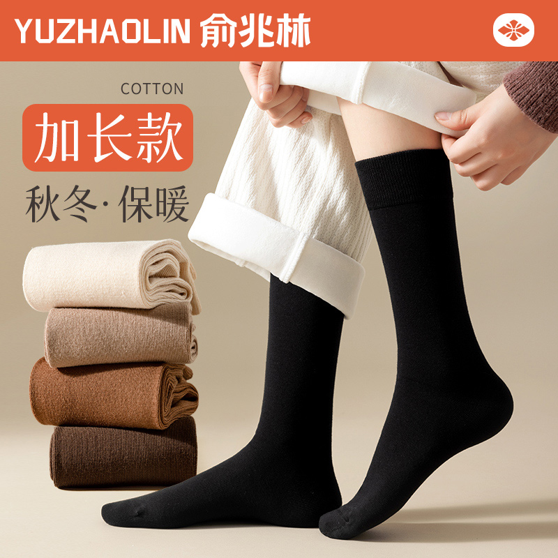 袜子女秋冬中筒袜纯棉长袜黑色无骨女士春秋保暖冬季高筒厚长筒袜