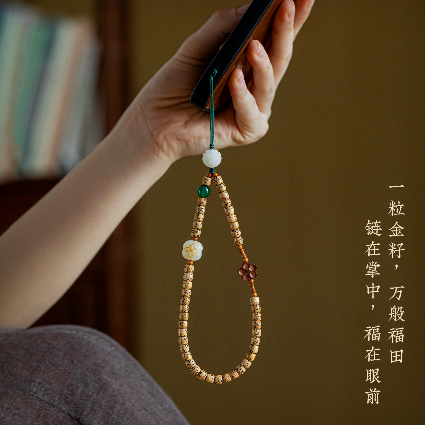 琼睿新款佛珠菩提手机挂绳柿柿如意手腕绳挂饰天然黄金籽佛珠好运挂件精致木珠手机链木质莲花手机壳男女配饰
