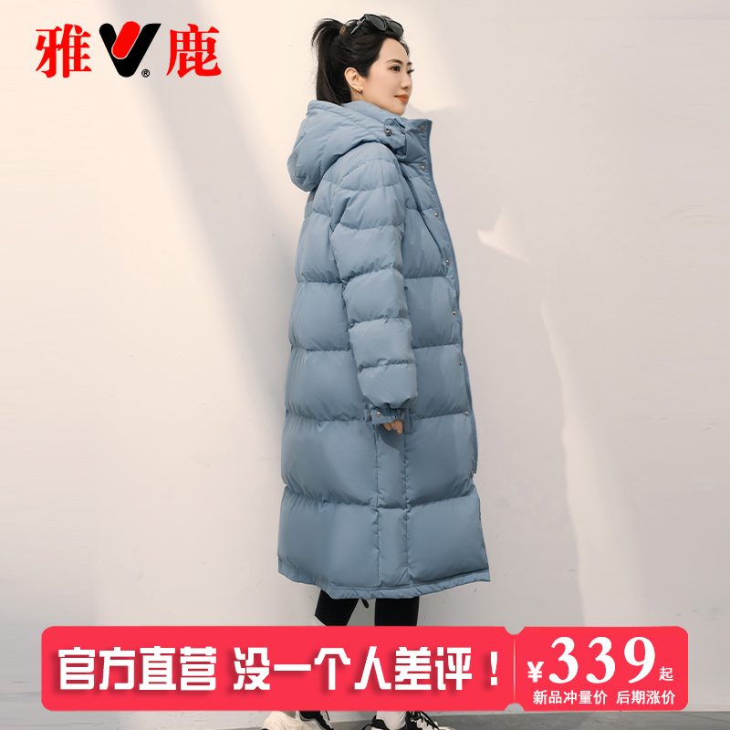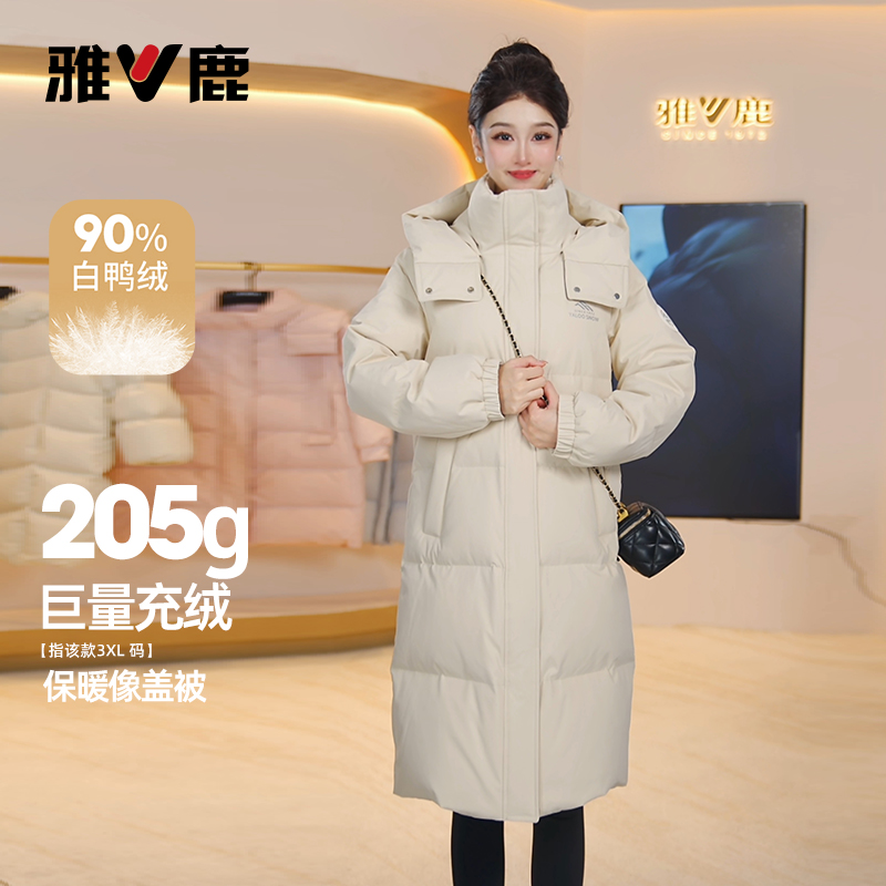 雅鹿羽绒服女中长款宽松大码加厚保暖白鸭绒外套女官方旗舰店正品