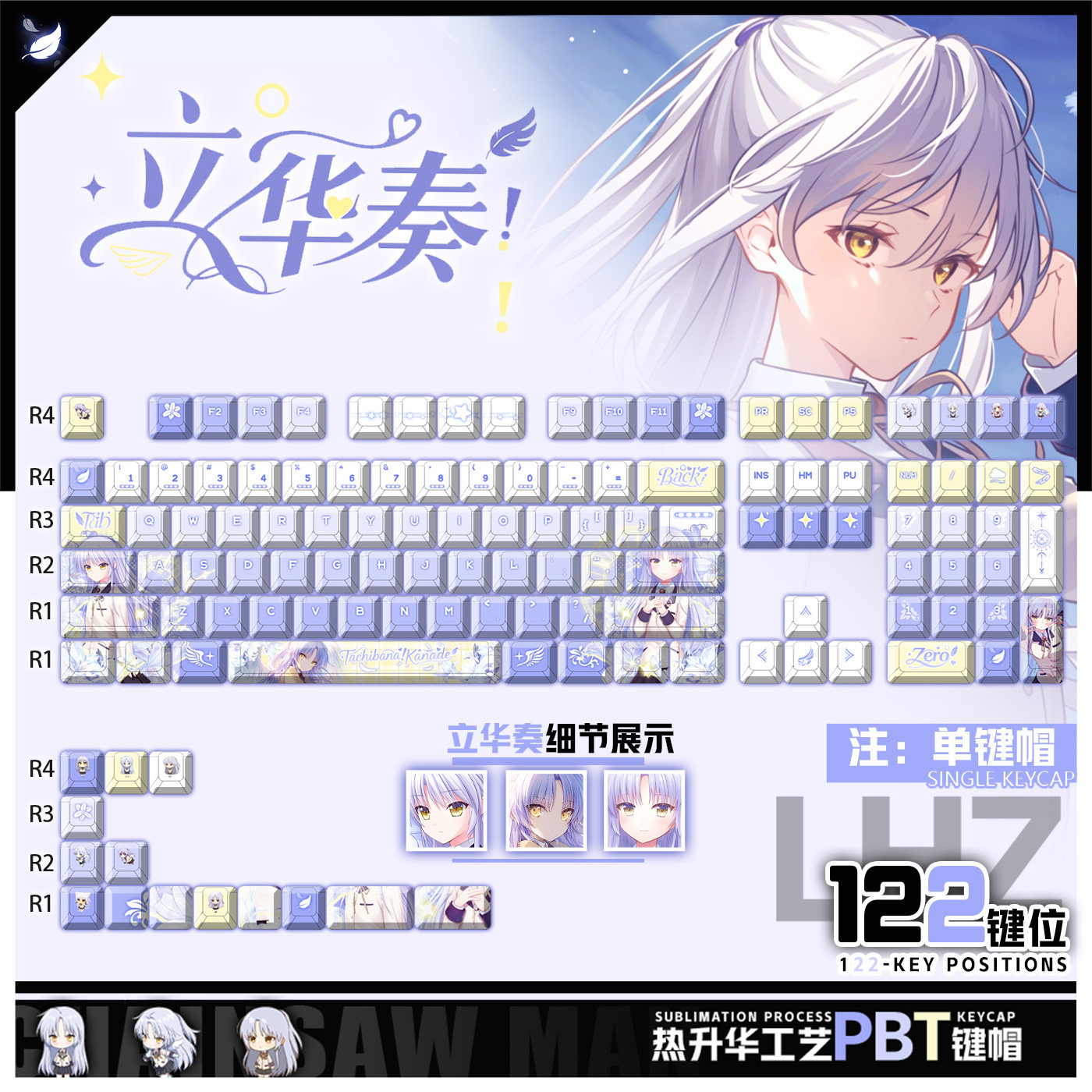 喵唔外设Angel Beats立华奏动漫周边二次元PBT键盘正侧刻透光键帽