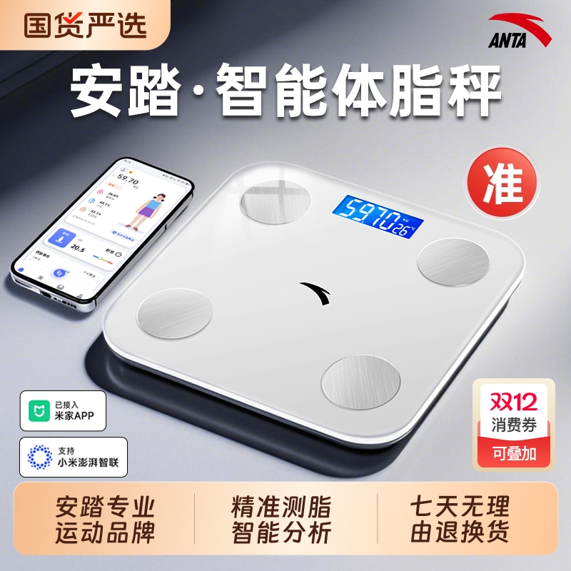 安踏电子秤体重秤体脂秤家用精准减肥人体称2025新款充电电池称重