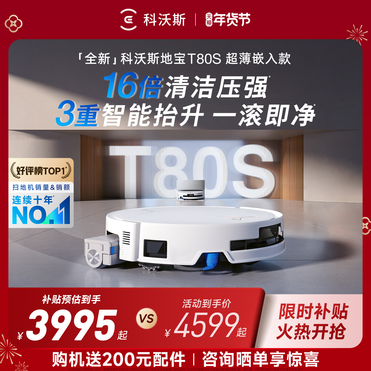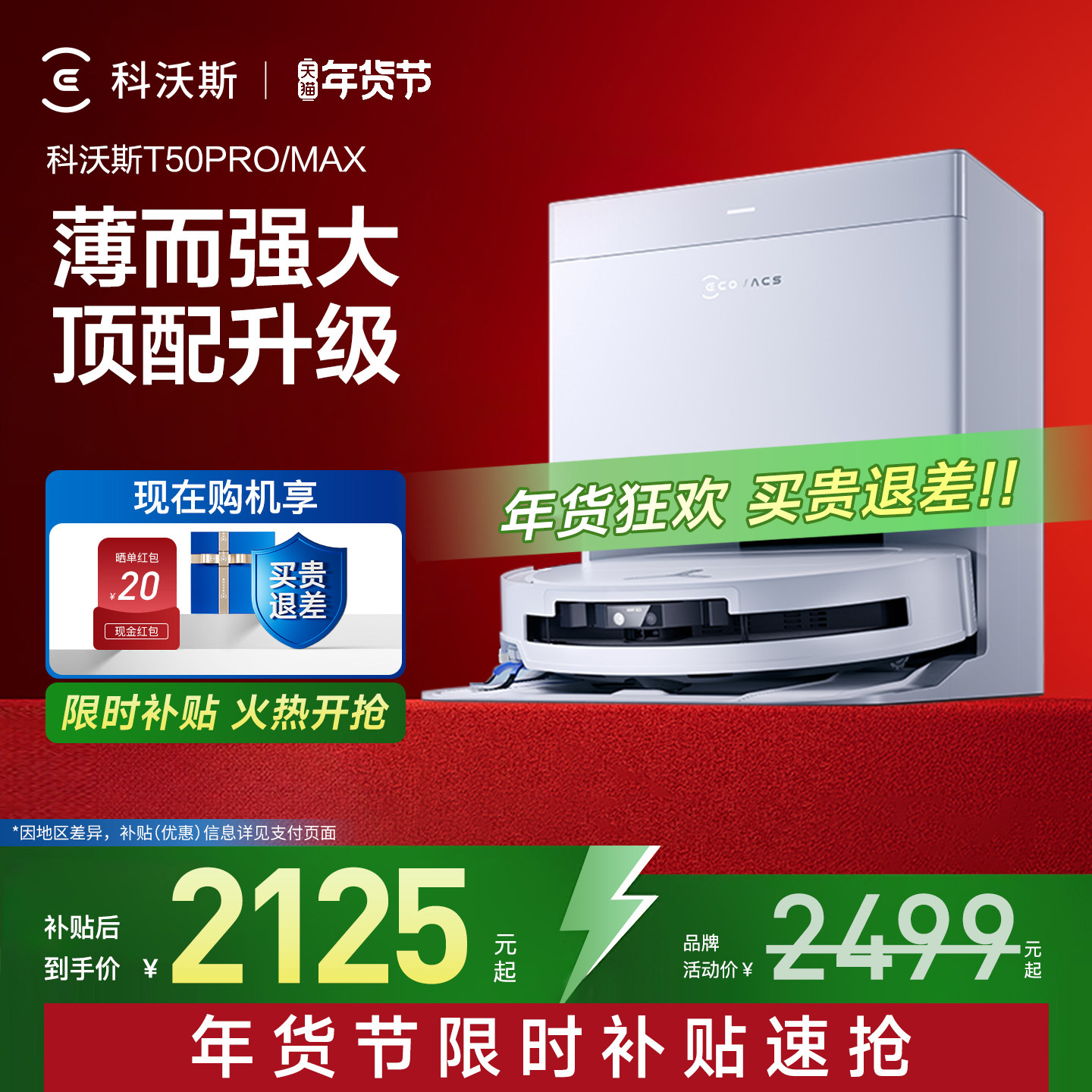 【年货节】科沃斯T50PRO/T50MAX全自动扫地拖地机器人超薄