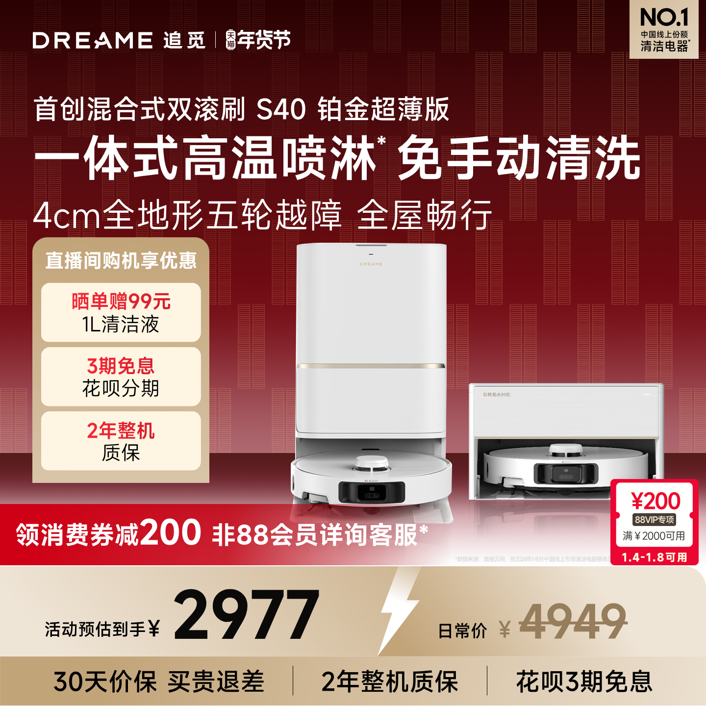 追觅S40铂金版扫地机器人超薄扫地拖地一体机自动清洗双机械臂