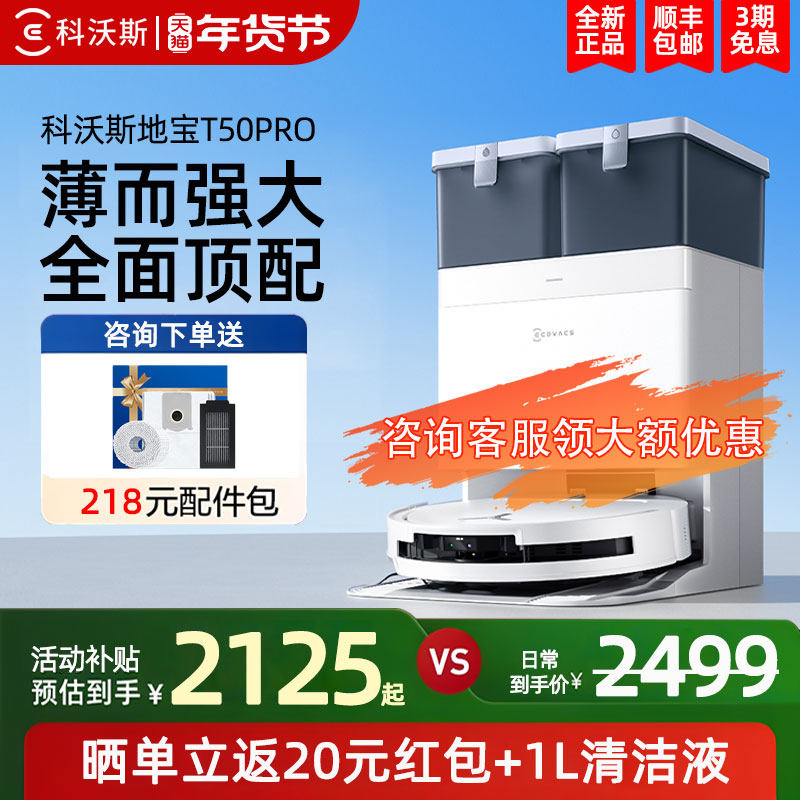 【年货节】科沃斯t50pro智能扫地机器人超薄自动上下水扫拖一体