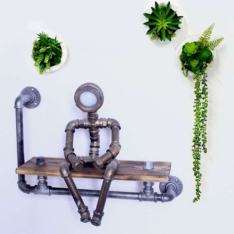 跨境美式乡村水管置物架墙上装饰壁挂架工业风复古书架创意隔板架
