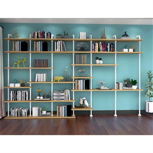 满墙书柜定制创意实木书架书桌组合艺术置物架水管墙壁转角落地 D