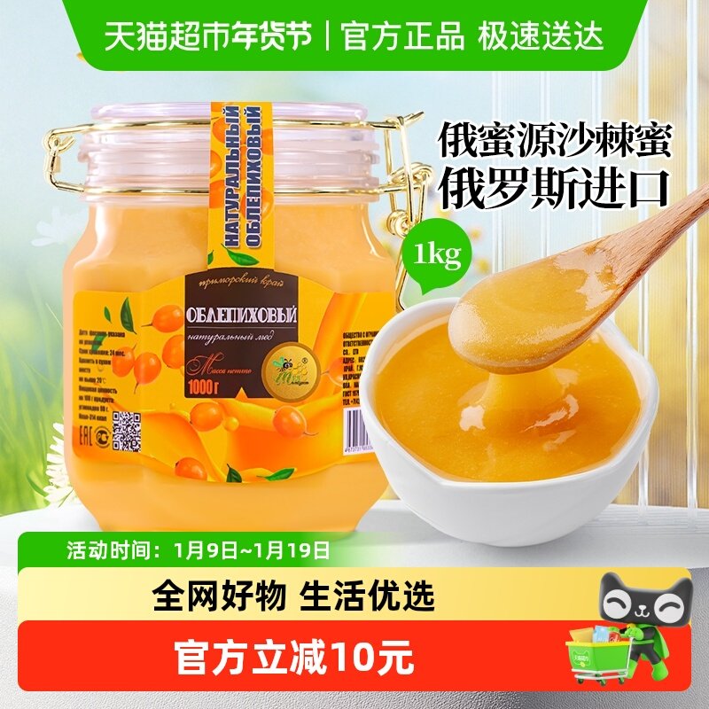 俄罗斯进口蜂蜜椴树蜜结晶雪蜜沙棘果蒲公英蜜即零食品瓶装1000g