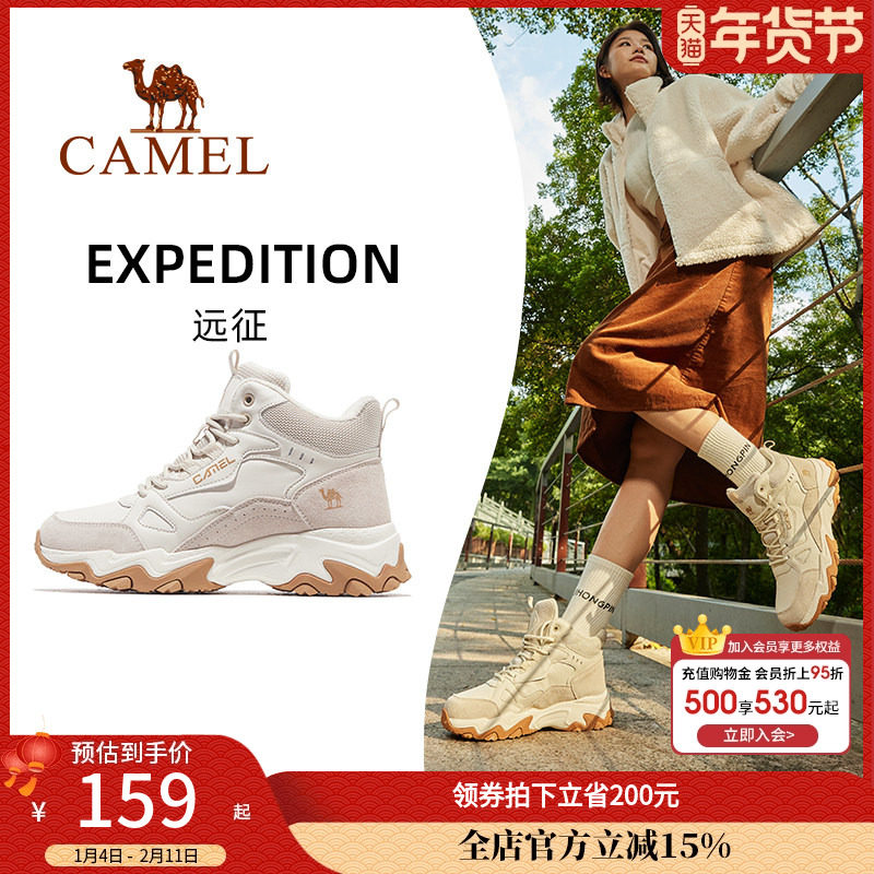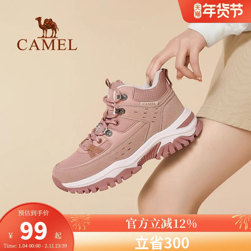 骆驼运动鞋女款冬季新款户外登山鞋马丁靴厚底高帮鞋耐磨防滑靴子