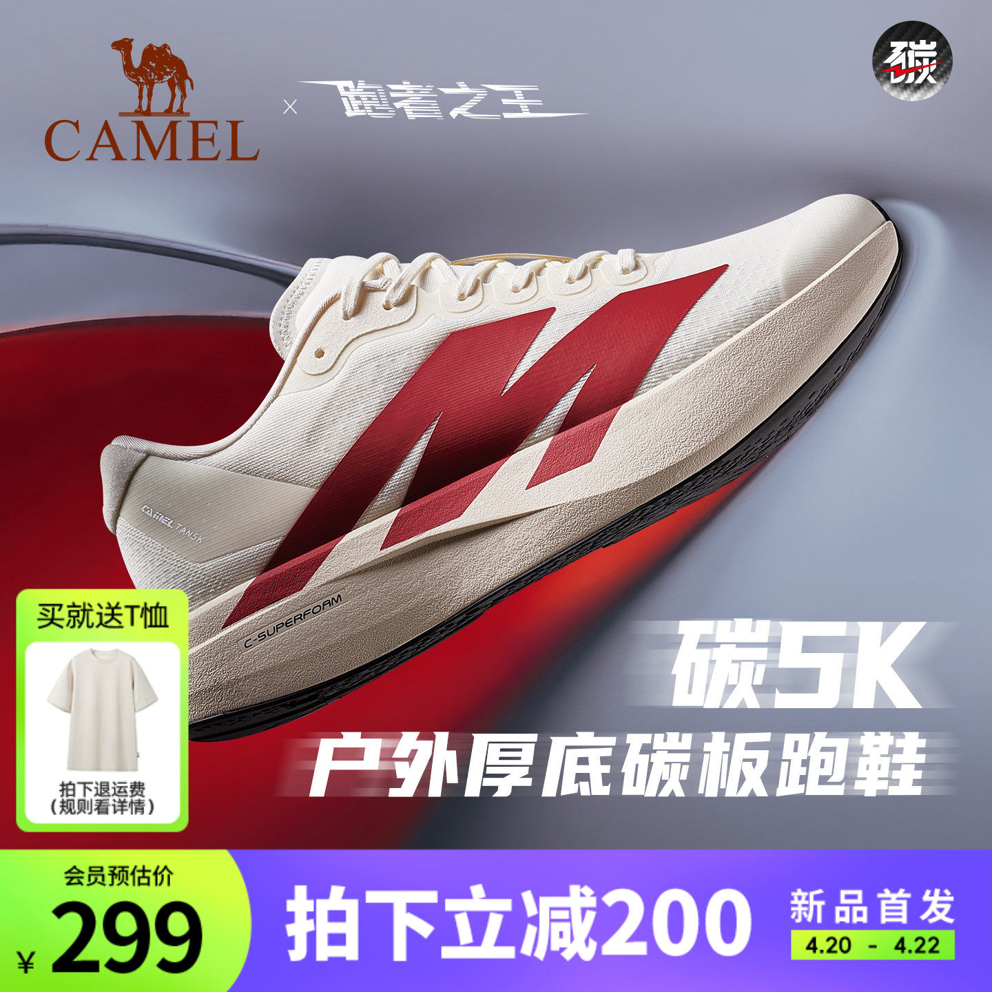 骆驼碳5K碳板运动鞋女士户外休闲鞋专业减震健身训练男女款跑步鞋