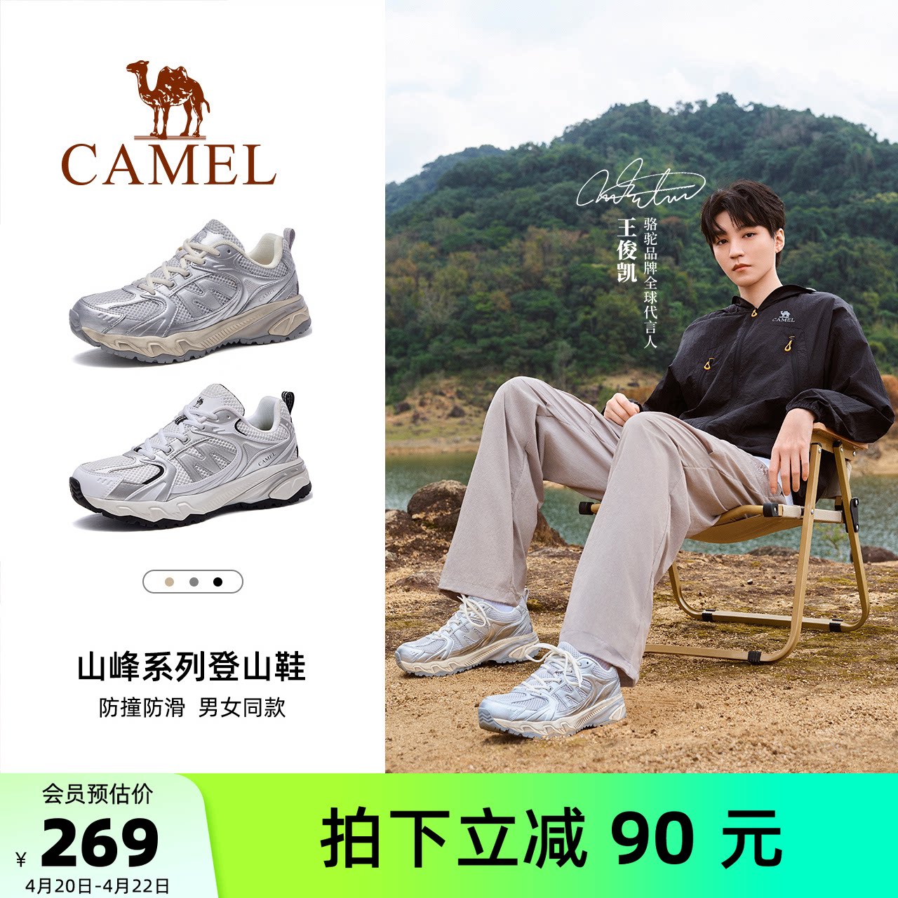 【王俊凯同款】骆驼凯旋登山鞋女士徒步户外运动鞋缓震防滑男鞋子