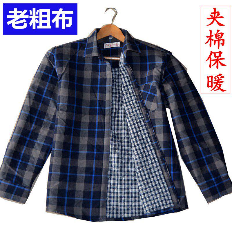 冬季男士纯棉加厚衬衫夹棉保暖棉衬衣中老年加棉舒适爸爸寸衫棉袄