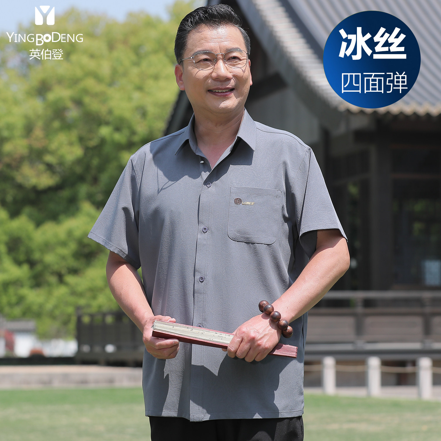 中老年衬衫男士冰丝爸爸衬衫短袖夏季衬衣灰色老年人父亲爷爷套装