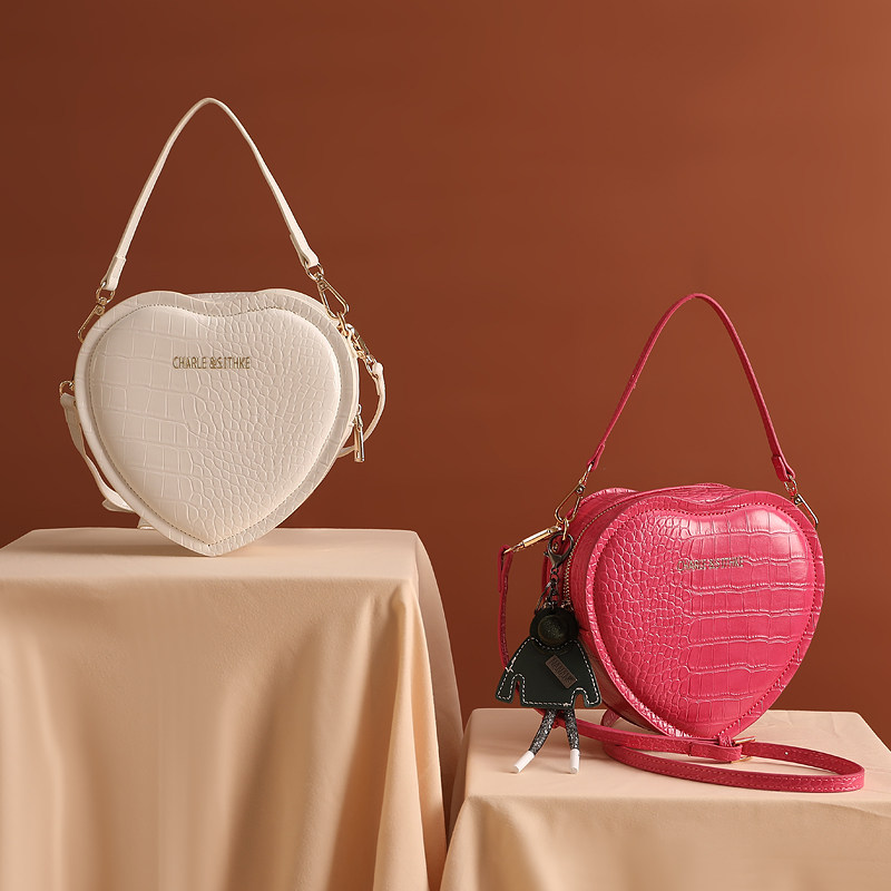 全新款迷你牛皮爱心型少女包包单肩斜跨原创设计网红钱包钥匙背包