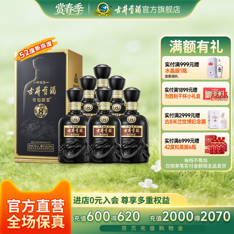 【升级52度】古井贡酒年份原浆古8 52度500mL*6瓶原箱高度白酒