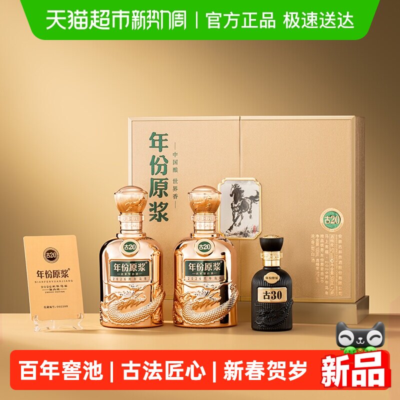【热销中】古井贡酒年份原浆古20 52度500mL*2瓶马年礼盒生肖白酒