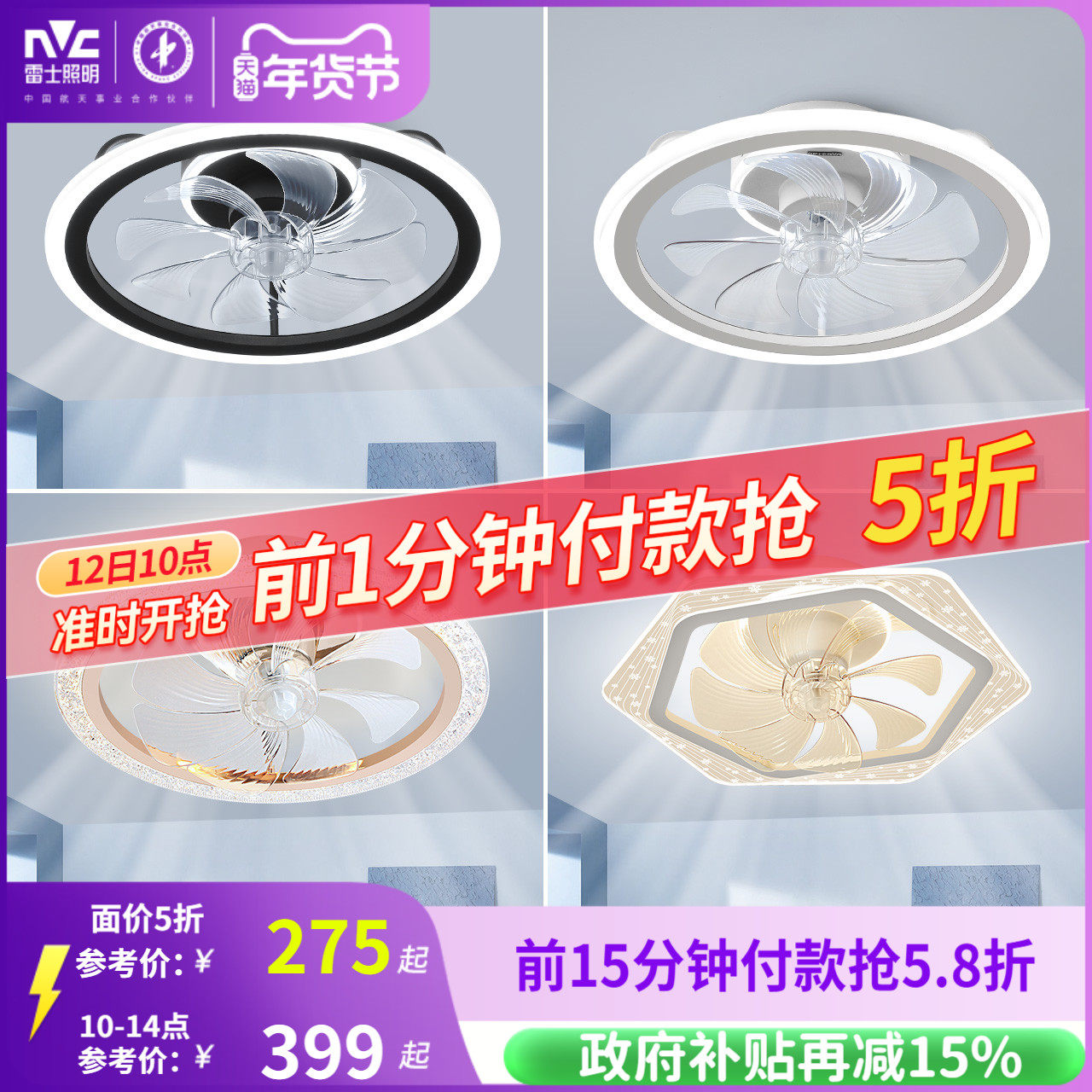 雷士照明吊灯客厅灯餐厅卧室主灯简约现代吊扇灯隐形风扇灯卧室灯