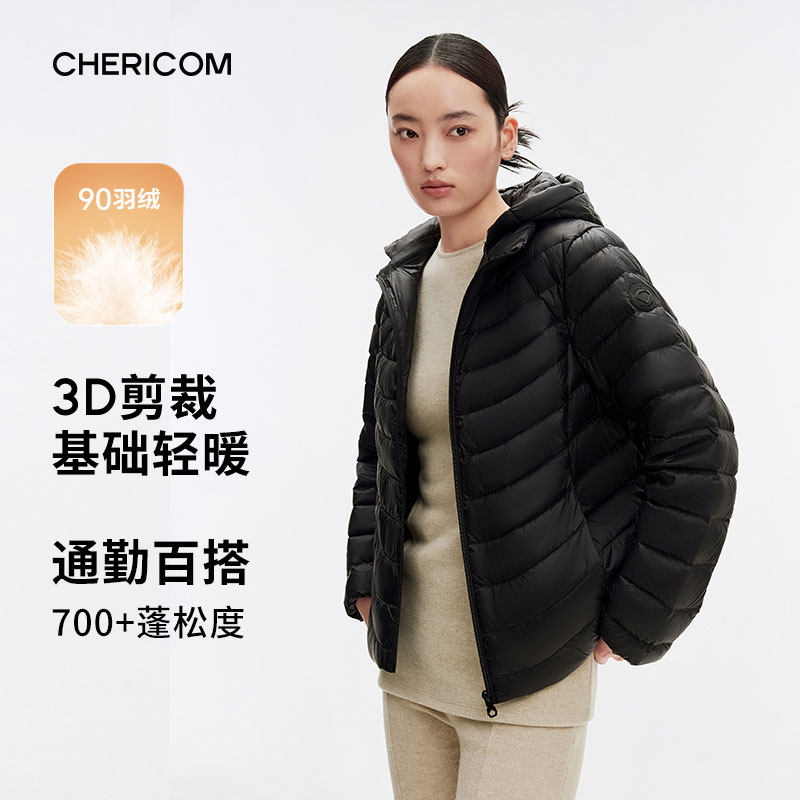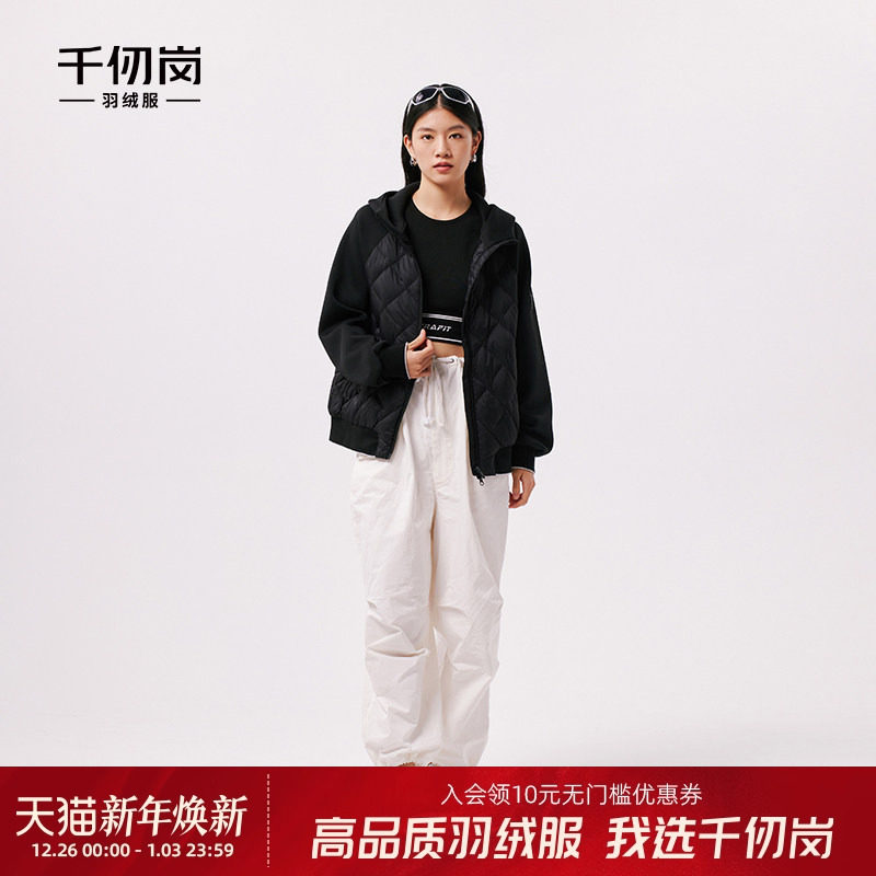 千仞岗2025秋冬新款短款羽绒服连帽保暖加厚简约外套大师联名女款