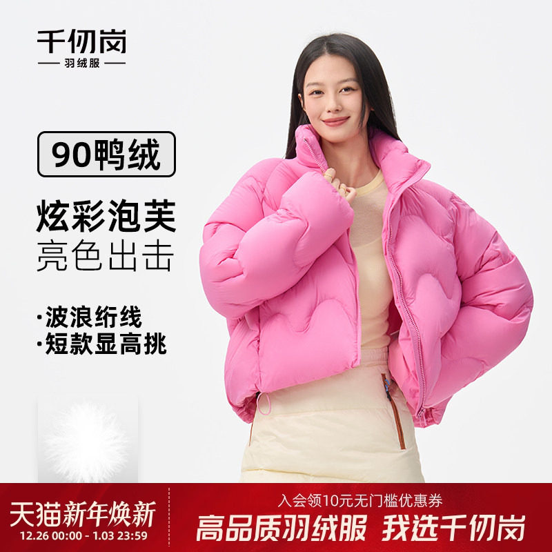 千仞岗2025冬季新款短款羽绒服立领时尚波浪纹泡芙保暖外套女上衣